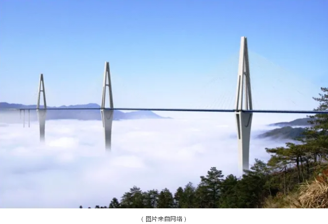 ■ 貴州平塘特大橋全長(zhǎng)2135米,從斜側(cè)面來(lái)看,三座橋塔就像三顆巨型“鉆石”矗立在峽谷之間,橋身穿塔而過(guò),是名副其實(shí)的“天空之橋”。其中,位于中間的16號(hào)橋塔凈高332米,相當(dāng)于110層樓高,是世界最高鋼筋混凝土橋塔,主體顏色是跟天空顏色一樣的蔚藍(lán)色。