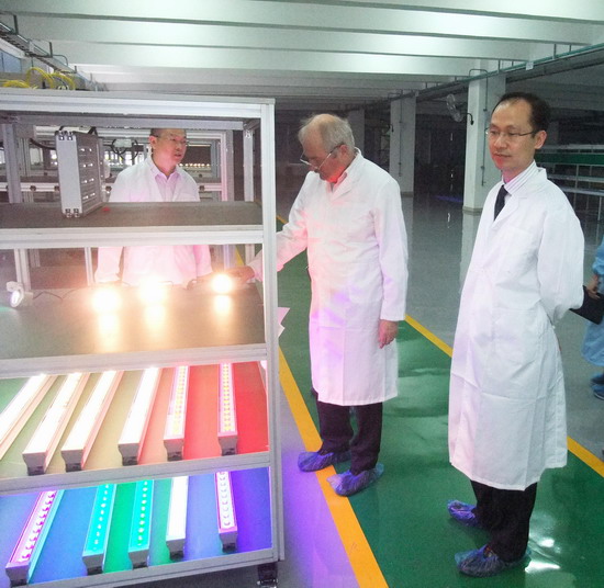 6月24日下午,歐司朗光電半導(dǎo)體公司全球總裁Dr. Muller 穆勒博士及亞太副總裁林肇基先生等人一行蒞臨廣日電氣參觀考察。廣日集團(tuán)副總經(jīng)理林峰、我司總經(jīng)理吳文斌進(jìn)行了熱情的接待,隨后帶領(lǐng)來賓到公司廠區(qū)進(jìn)行了參觀,并重點(diǎn)介紹了我司LED節(jié)能照明產(chǎn)品的生產(chǎn)情況。