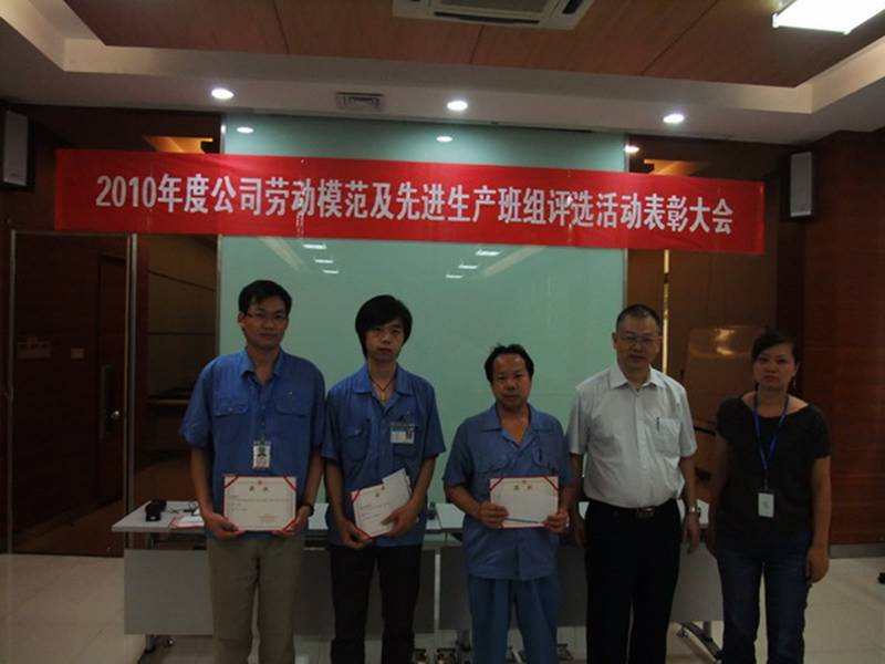 最后,吳文斌總經(jīng)理和洪宇主任為獲獎員工和先進生產(chǎn)班組頒發(fā)了獎狀和獎金。