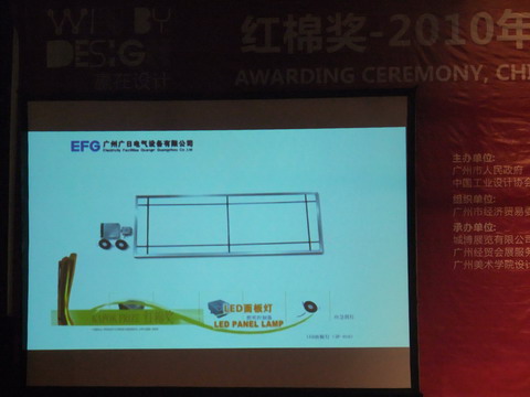 主持人介紹我司獲得“紅棉獎”的產(chǎn)品—LED面板燈