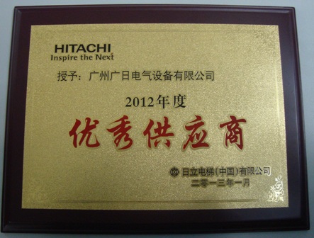 【公司榮譽(yù)】我司榮獲日立電梯(中國(guó))有限公司2012年度優(yōu)秀供應(yīng)商
