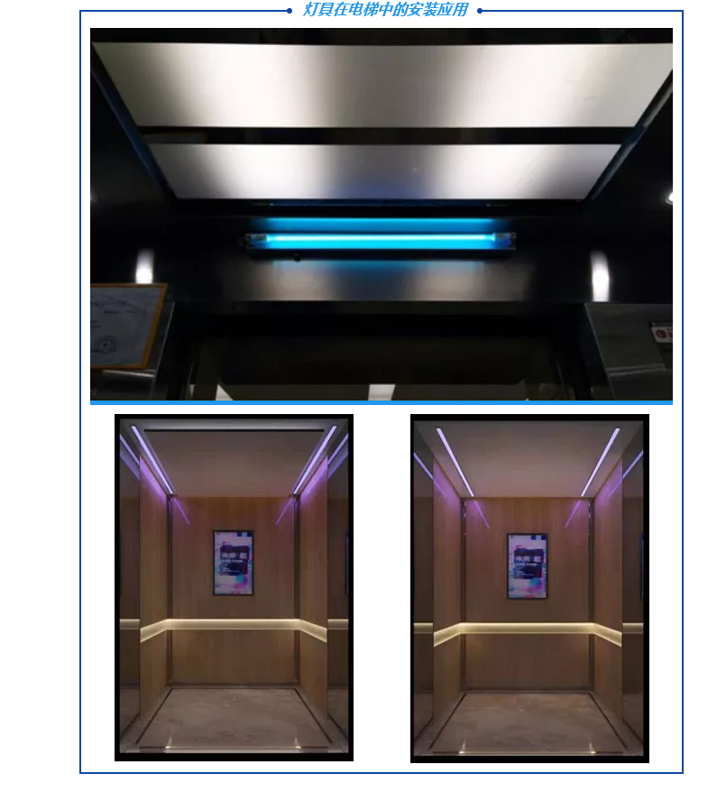 該燈具符合國家標準《GB19258-2012紫外線殺菌燈》,主要用于消毒殺菌,對細菌、病毒的殺滅率≥99%,可用于電梯、辦公室、會議室、餐廳、酒店、商場、醫院、學校等室內殺菌、消毒場所。目前,該燈具已在電梯上應用,效果明顯。
