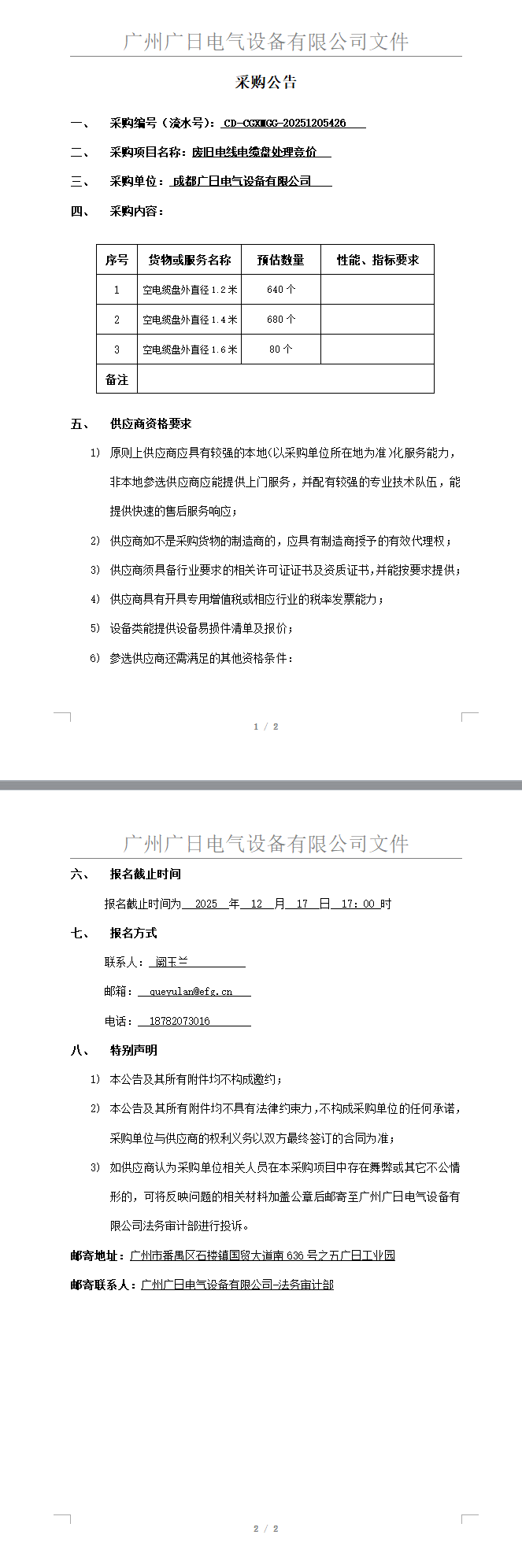 廢舊電線電纜盤處理競(jìng)價(jià)