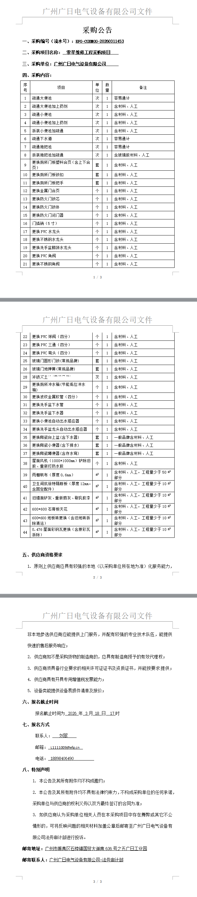零星維修工程采購(gòu)項(xiàng)目